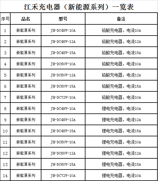 新能源系列一览表